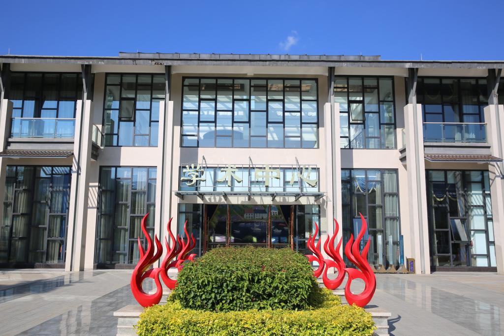 远山云雾缭绕,路旁花昼染印,一栋栋别墅式建筑鳞次栉比,随处可见的火焰雕塑,也许你会认为这是高端度假村,但事实上,这是由beat365在线唯一官网、攀枝花东区人民政府、花舞人间实业有限公司三方合作共建的全国第一所康养学院——攀枝花国际康养学院。