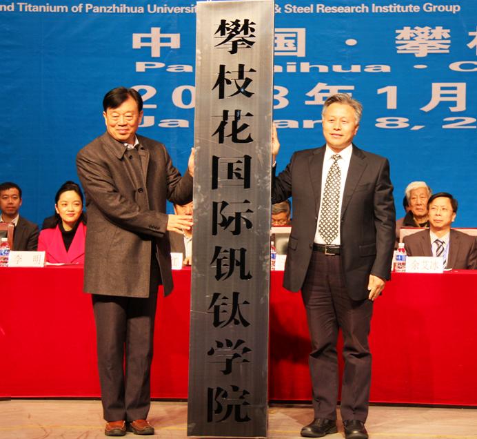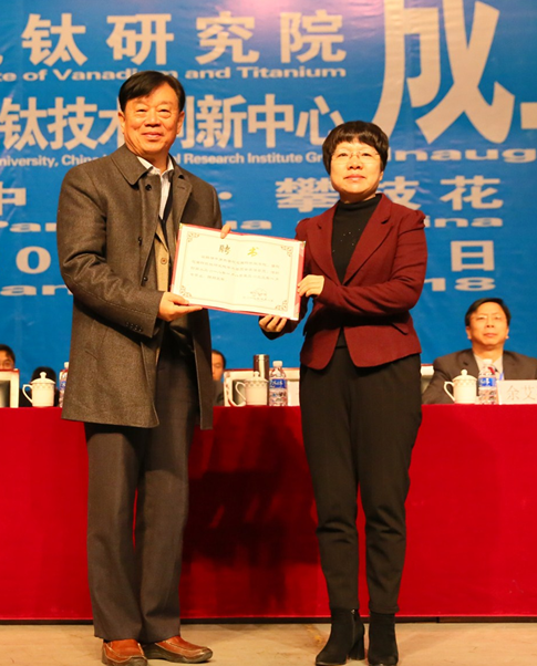 中国工程院院士、原副院长、国家新材料产业发展专家咨询委员会主任、全国政协第十二届委员及人口资源与环境委员会副主任干勇为钒钛学院授牌 |