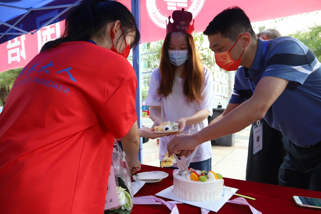 二级学院迎新点前,经管学院和外国语学院相继响起生日祝福歌,学院党委书记为“小寿星”送上生日蛋糕,小寿星在祝福声中许下大学的第一个生日愿望,顺利翻开大学新篇章。