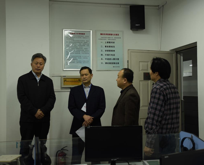 肖立军带队检查东苑校区的教学情况,重点检查了课堂纪律、学生到课、卫生和安全情况,对部分教学情况良好的老师和学习精神饱满的学生给予了肯定,并针对教学设施、教学环境的相关问题提出了整改意见。