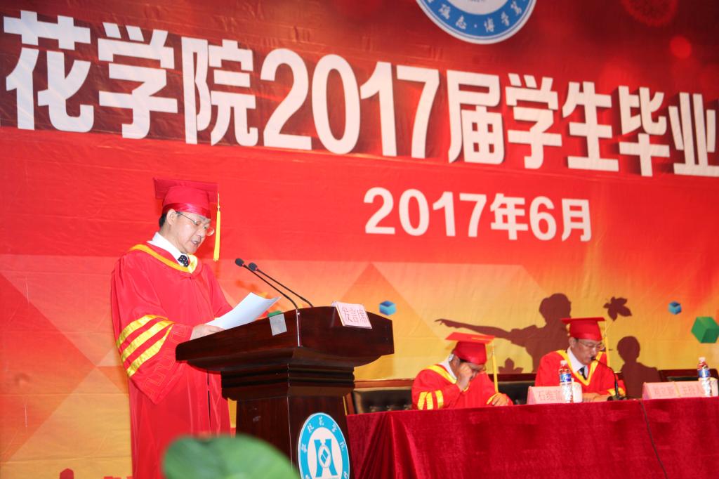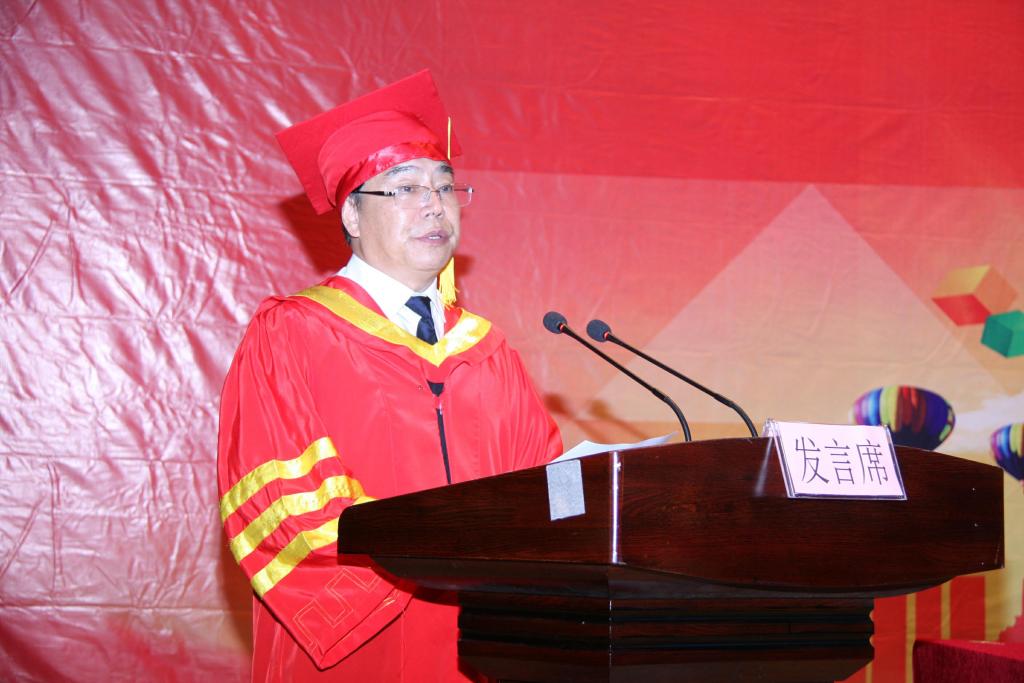 党委书记肖立军作重要讲话。他对同学们提出了三点希望,一是希望同学们毕业后成为坚持学习的人,让人生不断增值,走向成功;二是希望同学们毕业后成为有教养的人,有文化、有道德,模范践行社会主义核心价值观,有益于社会、有益于人民;三是希望同学们毕业后成为有所作为的人,不负时代重托,勇往直前。最后,他语重心长地寄语同学们,要始终拥有一个适合的岗位和事业,始终加入一个积极的团队,始终保持同母校和校友的联系,顺利时保持理性,逆境时保持坚守,失落时及时反思,成功时不忘初心。