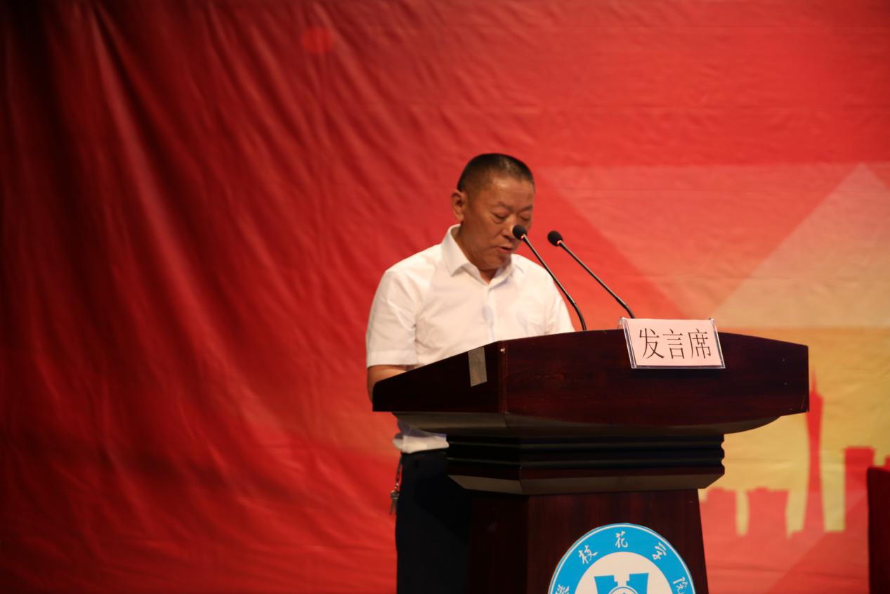 电信学院毕业生李欢的家长李懋民发言。他代表全体学生家长对学校领导、老师致以真诚的感谢,并祝愿同学们前程似锦。