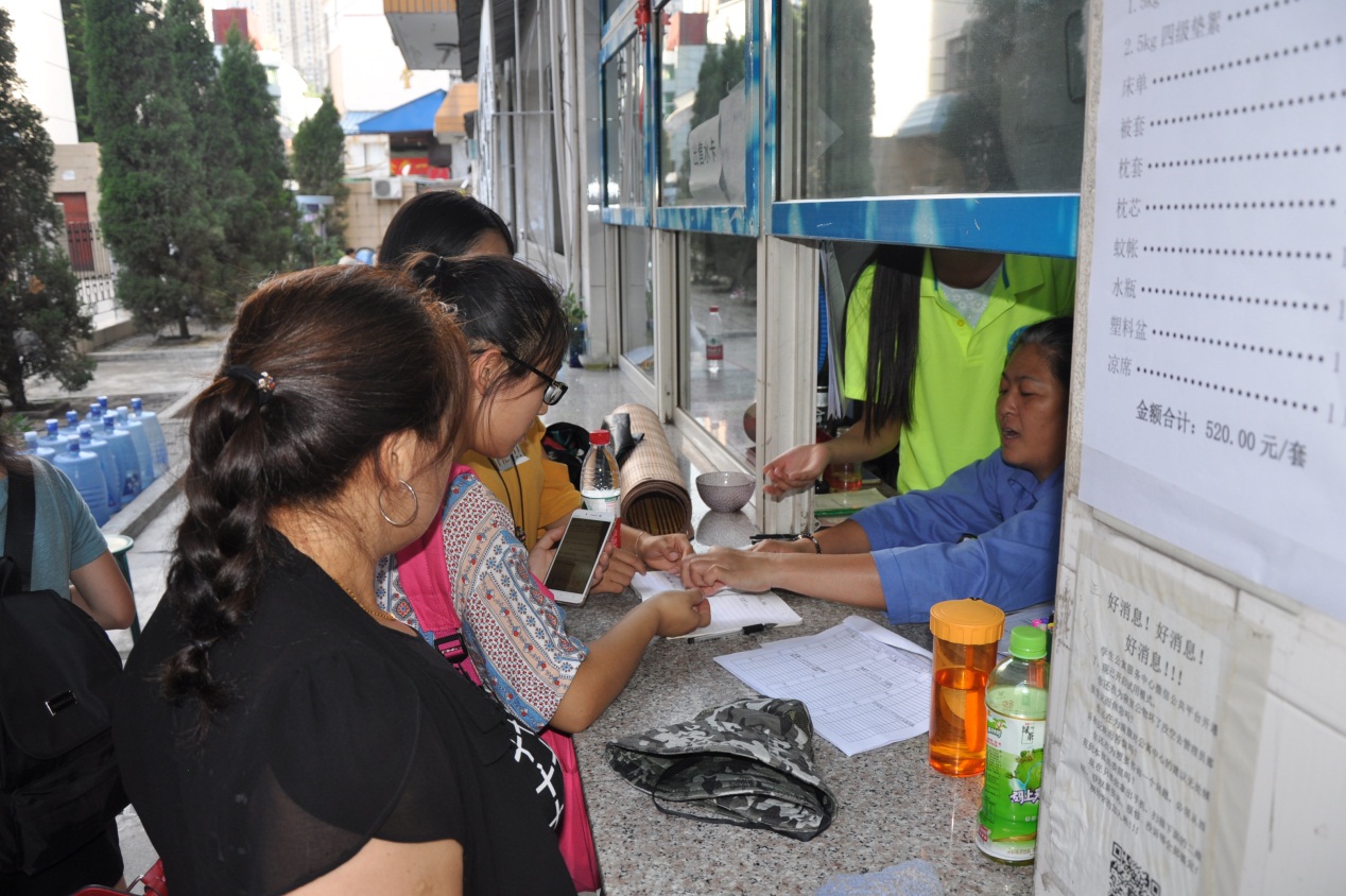 | 宿舍阿姨热情接待提前到来的同学和家长 |