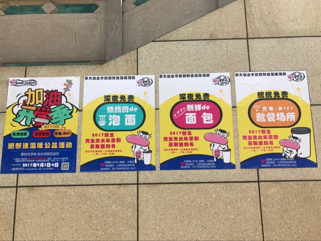 8月31日至9月3日,学校上下齐心,协调推进各项准备工作,迅速完成了《新生指南》、《新生报到程序表》、《学生手册》、《公寓手册》等资料的印制,各二级学院、火车站、汽车站迎新点的布置;完成了宣传栏、展板的设计制作、摆放,横幅标语、LED电子标语的悬挂与制作,营造了热烈喜庆的迎新氛围。针对近段时间进攀列车大部分在晚间,学校在南大门、分测中心、图书馆周边增设照明设备,提供通宵照明,确保夜间迎新工作正常顺利进行。