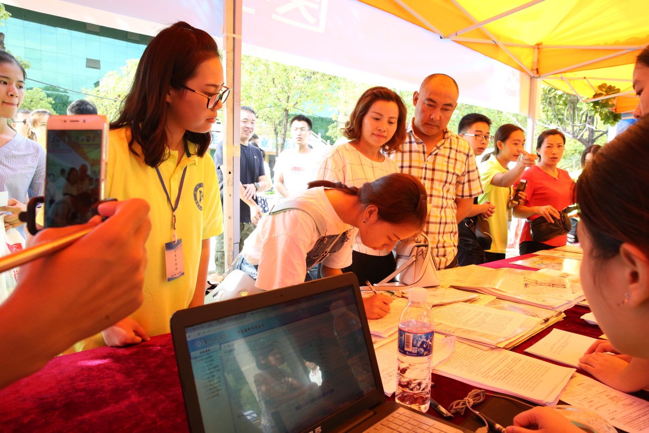 学校在迎新期间首次采用直播迎新工作的形式,将学校的相关情况以及新生报到流程通过网络直播展示给新生及家长。初阳映照,迎新点上洒满了日光,2017级临床医学专业李怡菲缓步走进了直播,在报到表上认真写下自己的名字。