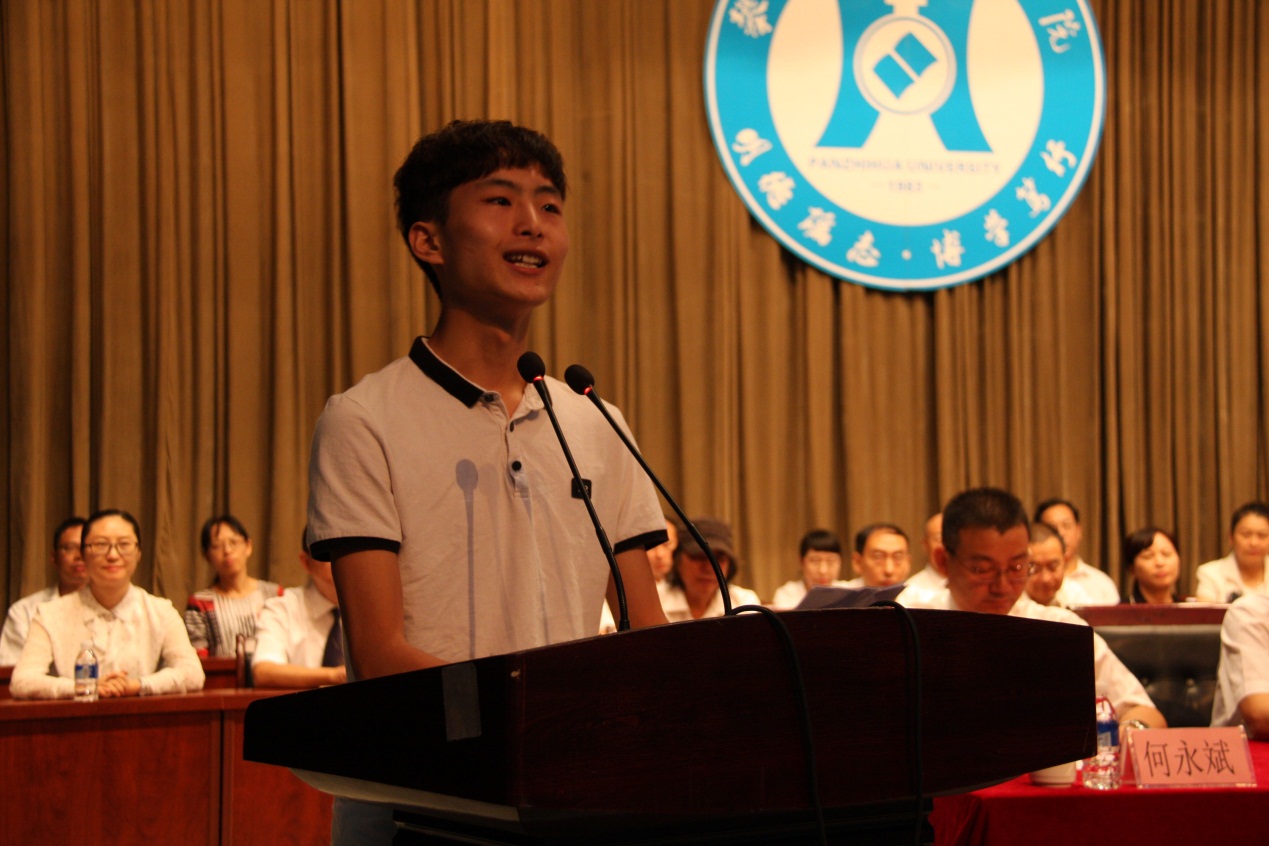| 数计学院2017级软件工程4班何水浪作为新生代表发言 |