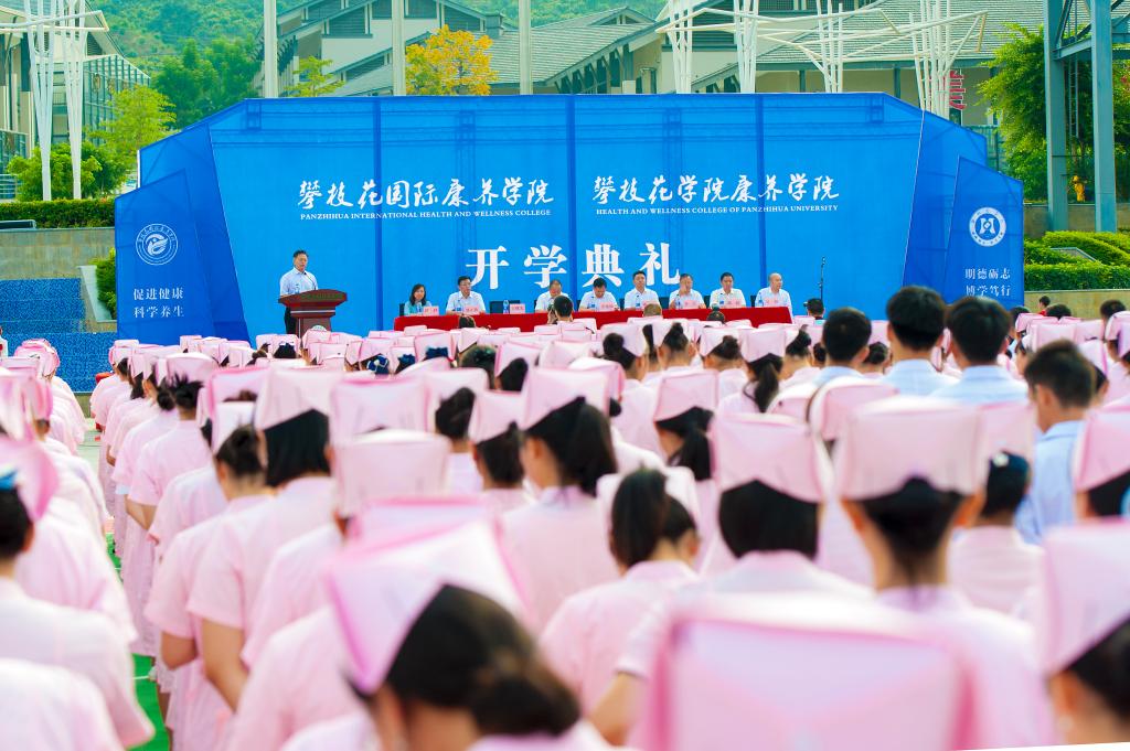 上午,攀枝花国际康养学院、beat365在线唯一官网康养学院在beat365东苑校区篮球场举行开学典礼,1300余名在校师生参加开学典礼。典礼由beat365党委副书记、校长王曙光主持。