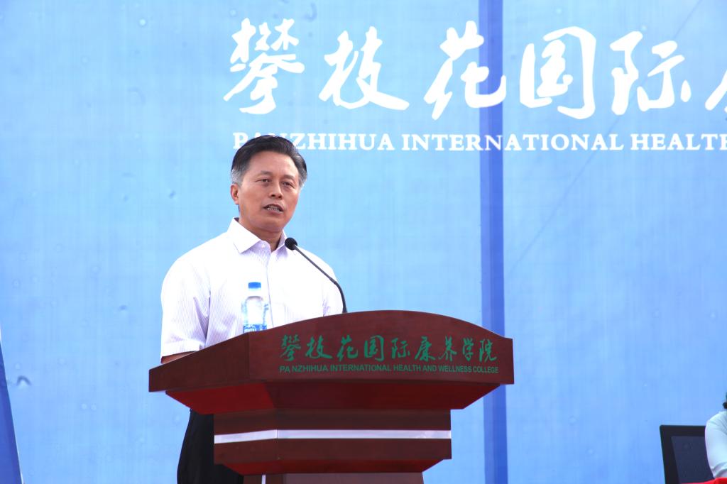 李建勤在讲话中代表市委、市政府热烈祝贺攀枝花国际康养学院落成开学,欢迎同学们走进国际康养学院学习生活。他指出,攀枝花是一座美丽的城市,是全国著名的阳光花城、康养胜地。省第十一次党代会对攀枝花作出了“建成攀西国家战略资源创新开发试验区和全国阳光康养旅游目的地”发展定位,市委、市政府深入贯彻落实省委部署,团结带领全市人民,充分发挥比较优势,全力做好“钒钛”“阳光”两篇文章,特别是高度重视“阳光”这篇文章,大力发展“康养+农业”“康养+工业”“康养+医疗”“康养+运动”“康养+旅游”五大“康养+”产业。在此背景下,攀枝花国际康养学院应运而生,标志着攀枝花“康养+医疗”在全国迈出了第一步。