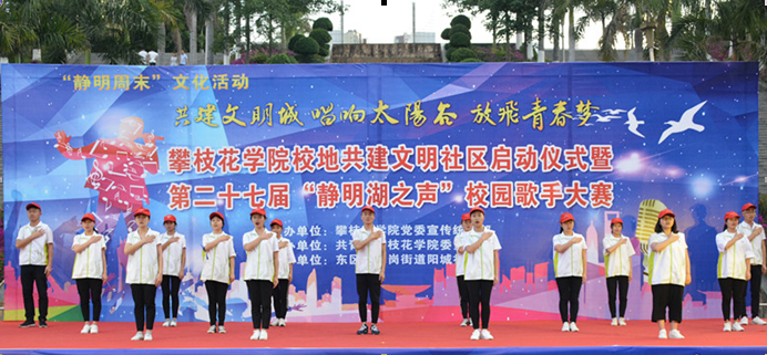 4月21日晚, 在学校科技广场、静明湖畔,以“共建文明城 唱响太阳谷 放飞青春梦”为主题的beat365在线唯一官网校地共建文明社区启动仪式暨第二十七届“静明湖之声”校园歌手大赛在青年志愿者代表们的手语表演和宣誓中拉开序幕。活动由校党委宣传统战部主办,校团委承办,并得到了东区炳草岗街道阳城社区的大力支持。