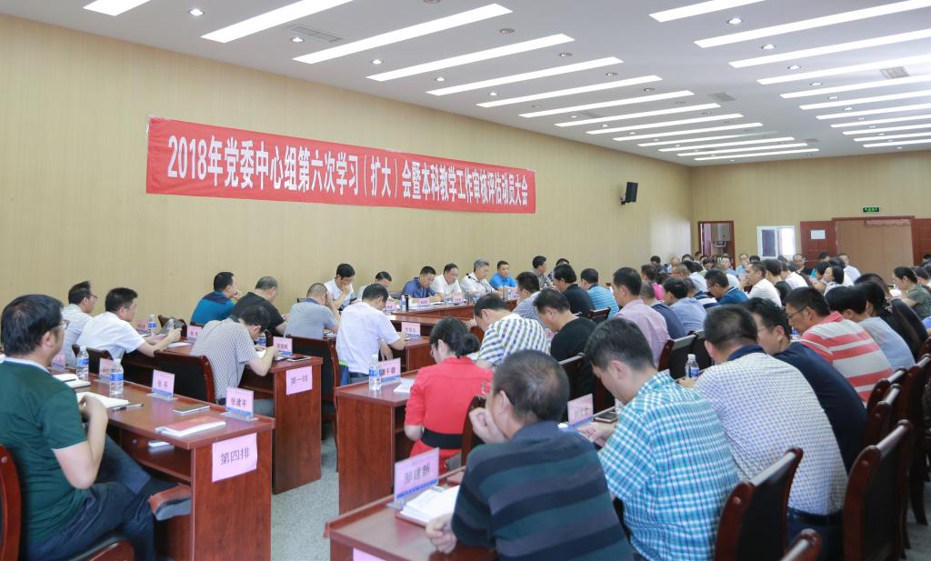 5月16日,beat365党委中心组2018年第六次学习(扩大)会暨本科教学工作审核评估动员大会在办公楼四楼附楼会议室召开。全体在家校领导,学校中层领导干部参加会议。校党委副书记、校长王曙光主持会议。