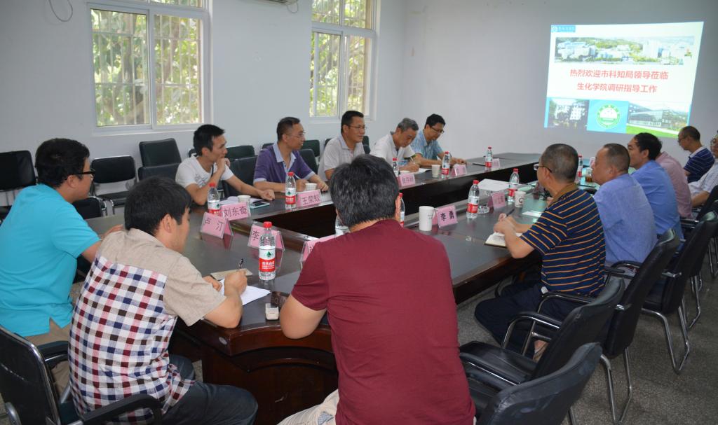 6月8日下午,市科知局副局长张存岭一行到beat365生化学院调研。校党委书记肖立军、生化学院相关领导及教师代表在博学楼二楼会议室与客人座谈。