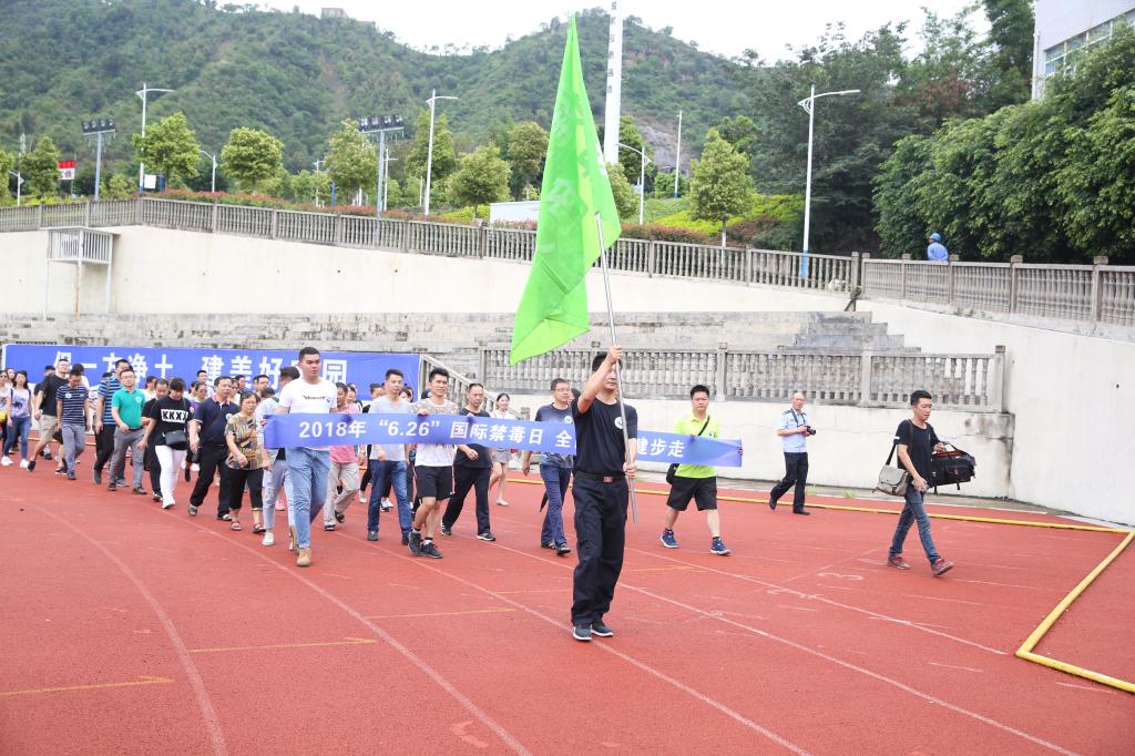 在旗手志愿者的带领下,千人方队列为纵向四列,由beat365在线唯一官网西苑运动场出发,经攀枝花公园到竹湖园广场,顺利完成此次全面禁毒健步走活动。