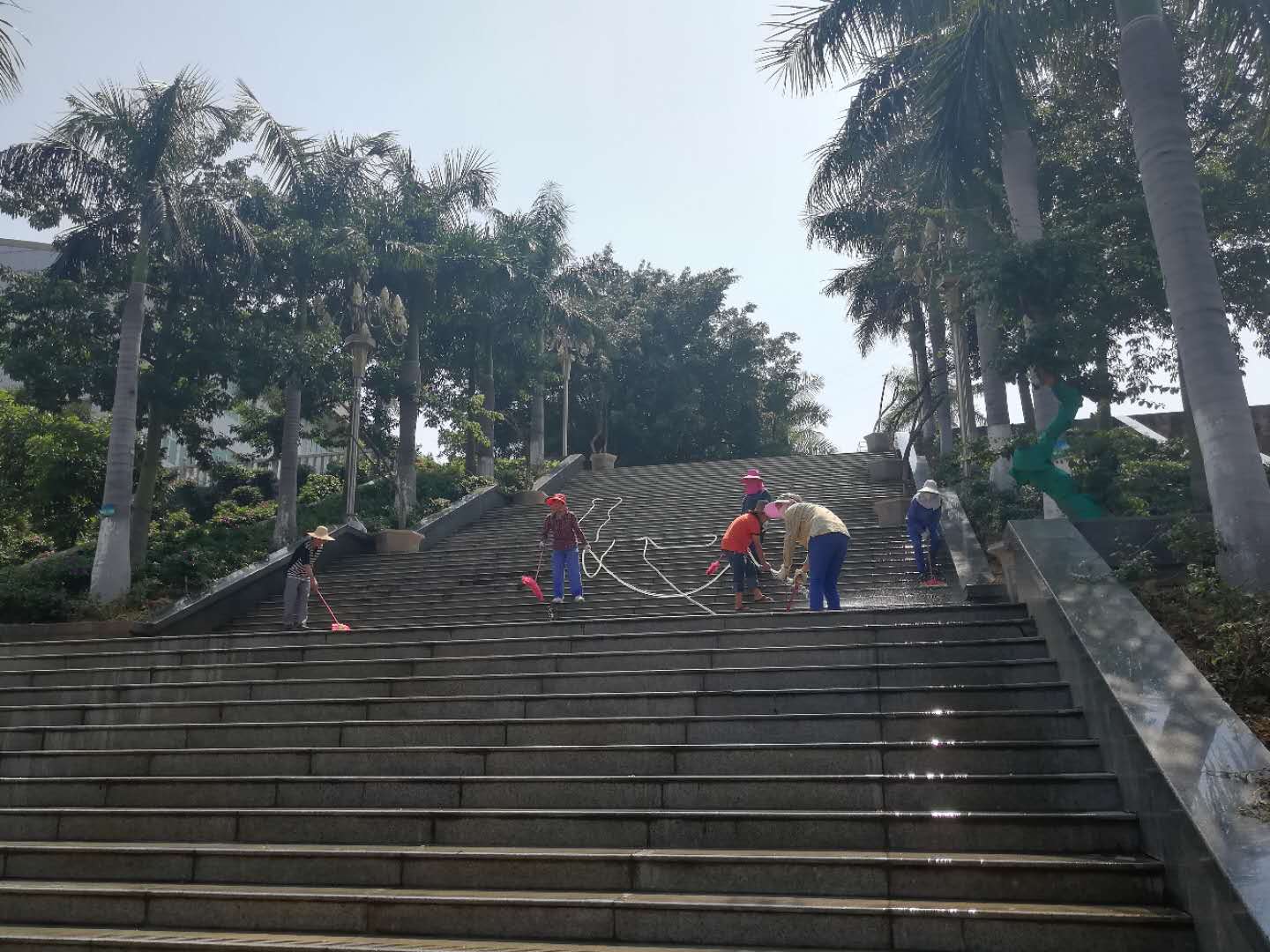 学校大范围的维修改造,给负责垃圾清运、道路清扫的物业人员增加了工作量。静明湖水面枯枝落叶较多,工人们顶着烈日清理,保持湖水清洁。修缮全部教学楼破损课桌椅、门窗,清扫校园人行道、运动场地共计2.5万平米,租用环卫清扫车清洗路面。