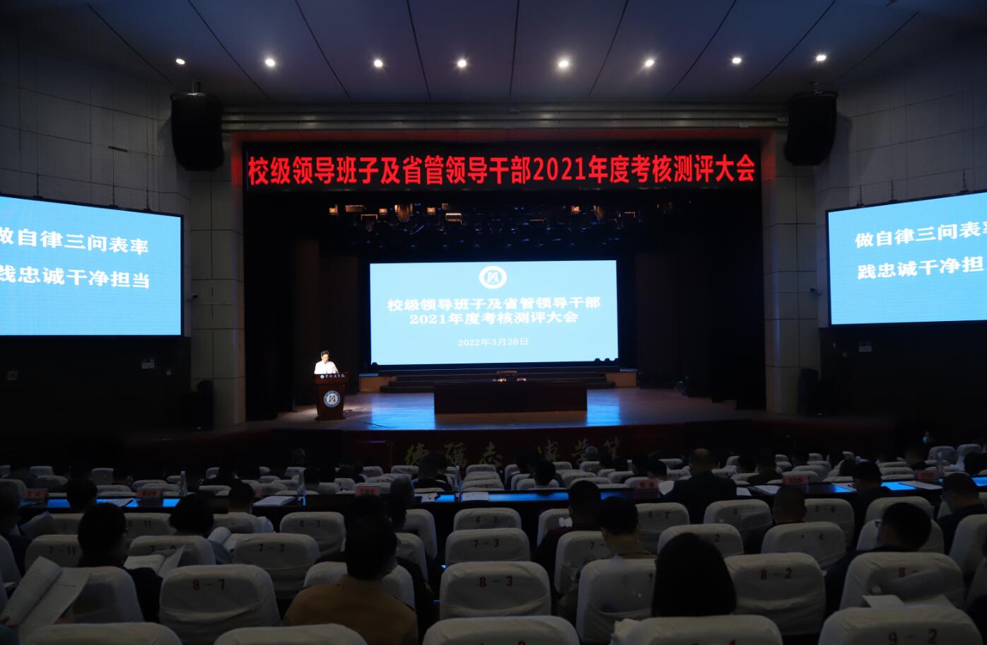 3月28日上午,beat365校级领导班子及省管领导干部2021年度考核测评大会在学校会堂召开。校党委书记王斌主持会议。学校领导班子成员,处级领导干部,职代会、教代会负责人,在校的省、市党代表、人大代表、政协委员,民主党派在校负责人,正高专业技术职务人员代表共计142人参加了测评大会。