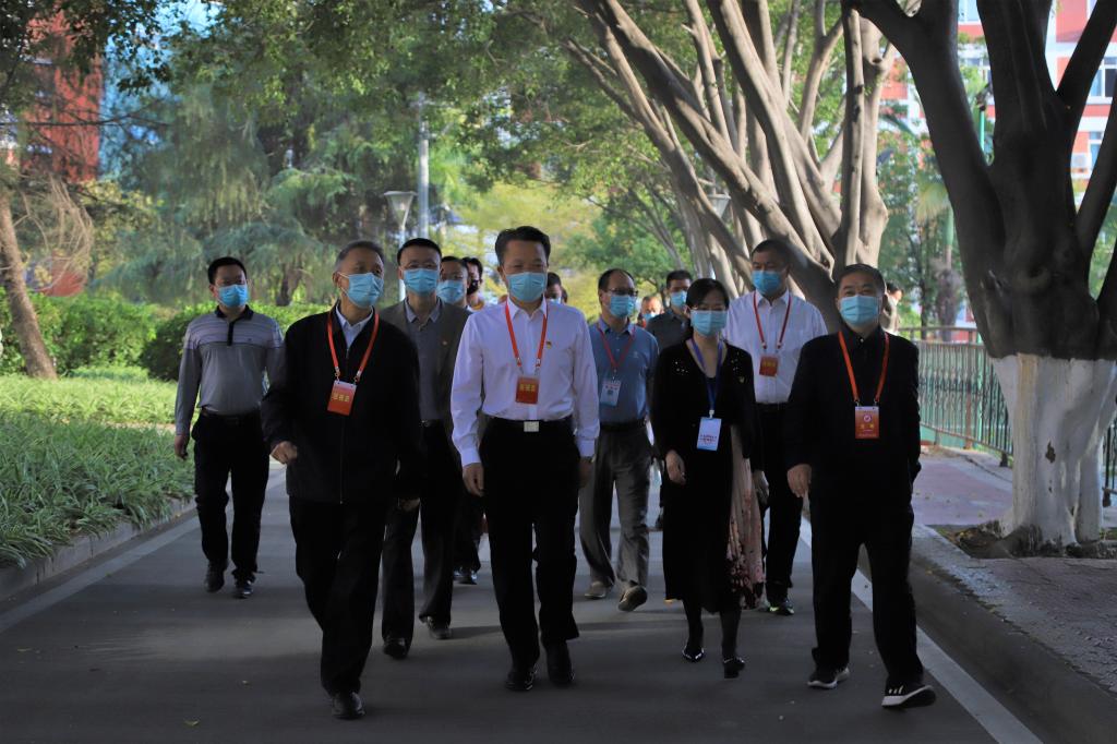 3月12日上午,副市长许军峰来校督导检查校园疫情防控工作,并巡视beat365考点2022年上半年全国中小学教师资格考试(笔试)。市政府副秘书长何明华,市教育与体育局副局长李刚、彭格,市卫生健康委副主任林天才随行,校党委副书记、校长王曙光,副校长朱波强、王兵陪同。