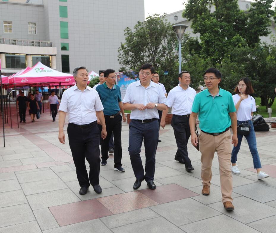 在党委副书记、校长王曙光、副校长刘立新、石维富的陪同下,崔昌宏实地查看了迎新点,参观了校史馆、产教融合科技馆,听取了学校关于开学保障工作、迎新工作等情况汇报。