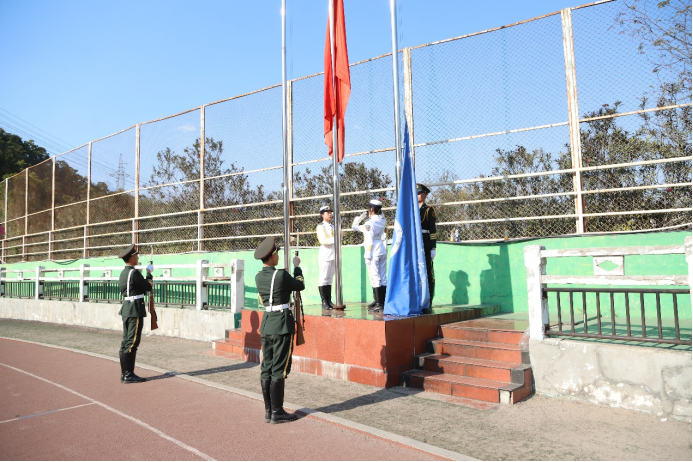 大会在隆重的升旗仪式中拉开帷幕。国旗护卫队以整齐的步伐迈向升旗台,随着嘹亮的国歌响起,在庄严肃穆的气氛中,全体师生肃然起立,面向冉冉升起的五星红旗敬礼。