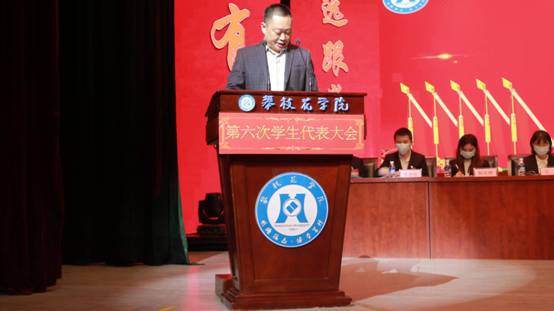 胥刚首先对本次大会的顺利召开表示热烈祝贺。他充分肯定了自第五次学代会召开以来学生会在服务学生、促进发展的各项工作中所取得的成绩,并对学生会未来的工作提出了三点要求: 一是把握正确政治方向,将广大同学最广泛最紧密地团结和凝聚在党的周围;二是坚持服务同学宗旨,引导广大同学努力成长为德智体美劳全面发展的中国特色社会主义建设者和接班人;三是加强自身组织建设,增强学生会组织的政治性、先进性、群众性,做自律攀大人的典范和表率。