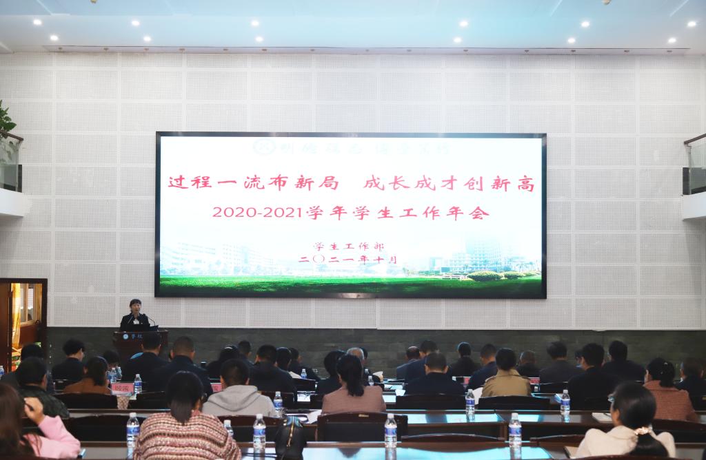 为总结和凝练经验,扎实推进学生工作再上新台阶,助推学校人才培养“过程一流”建设,10月22日上午,beat365在图书馆二楼学术报告厅召开2020-2021学年学生工作年会。校党委副书记胥刚出席大会并总结讲话。