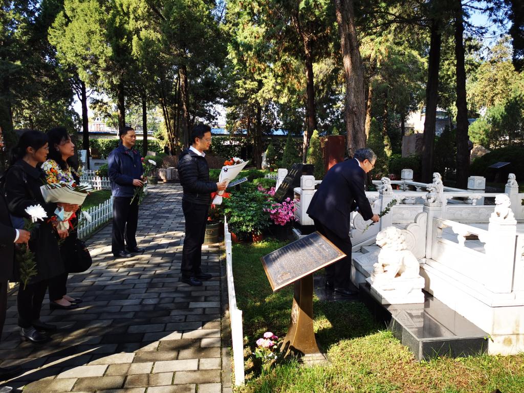 在八宝山,方小榕向王斌一行介绍了方毅的生平和革命经历,对经济建设、对外援助、教育科技工作的领导、关注和支持。大家三鞠躬并敬献鲜花。方小榕还带领王斌一行参观了此爱国主义教育基地其他国家领导人、无产阶级革命家的墓碑。大家感慨,通过祭拜这些逝去的国家领导人和革命先烈,回顾他们的生平和革命事业、奋斗征程,就是在了解一部波澜壮阔的近现代革命史、发展史、建设史,大家表示在此受教很多、感触很深。