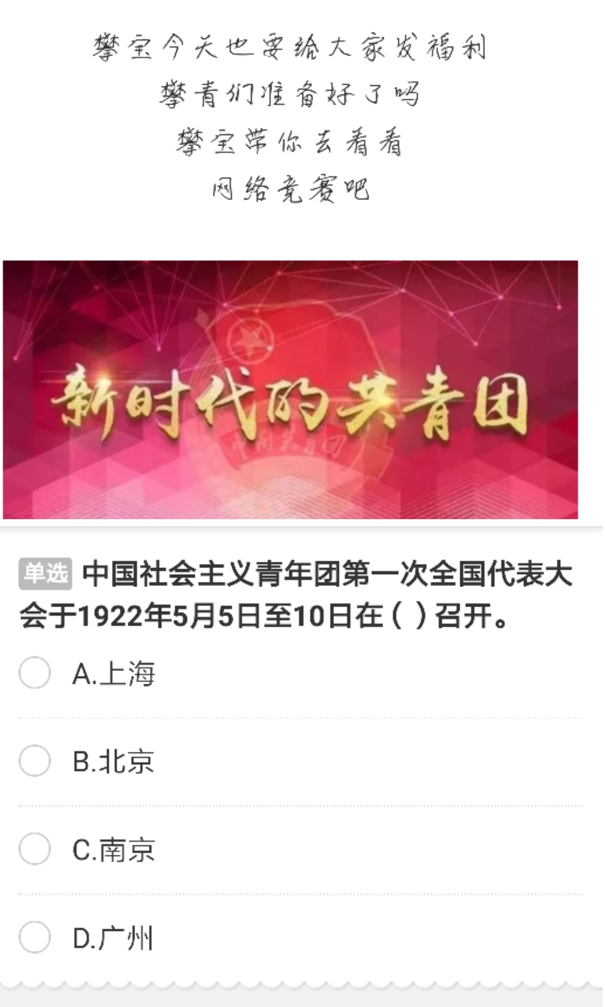 据悉,beat365将通过此次竞赛,选拔出优秀的三名同学,在团委老师的带领下,参加由团市委、市直机关工委、市党委史研究室联合组织的“青春心向党·建功新时代”纪念五四运动100周年主题党团知识竞赛复赛。