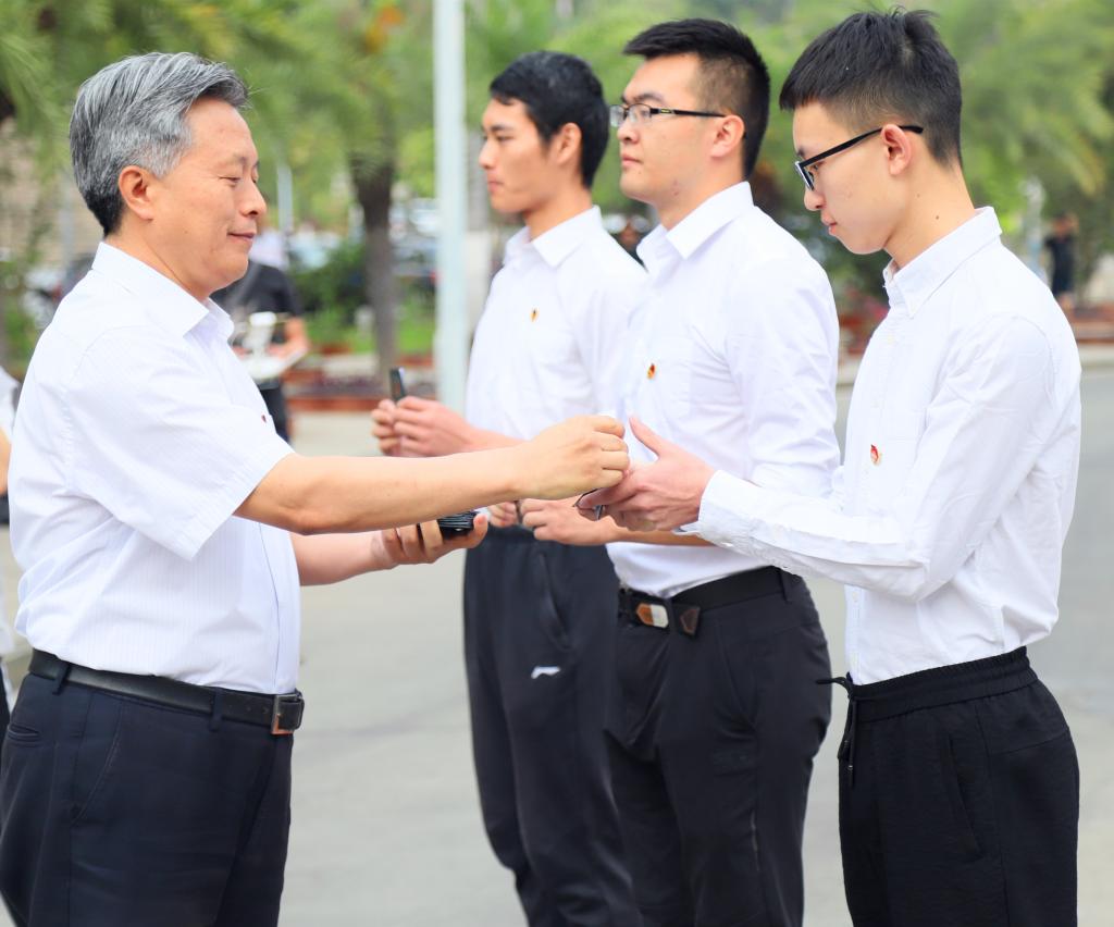 | 学校党委副书记、校长王曙光为新团员颁发团员证 |