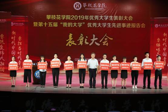 大会对2017-2018学年度46个优秀班集体、682名三好学生、520名优秀学生干部、26名国家奖学金、614名励志奖学金获得者和600名“攀大青年”奖学金获得者,以及2019届41名省级优秀毕业生和282名校级优秀毕业生进行了表彰。与会校领导及嘉宾分别为获奖的集体和个人颁奖。