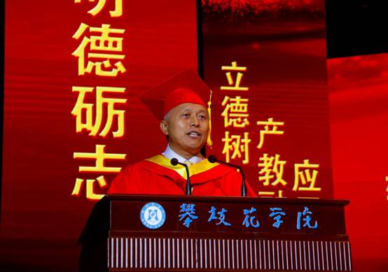 王曙光讲话。他代表学校对2019届毕业生表示诚挚的祝贺和衷心的祝福。他希望,同学们要树立远大理想,学以成才、志以成学,既要仰望星空,更要脚踏实地;要热爱伟大祖国,将小我融入大我,胸怀天下、心怀大爱,做中国特色社会主义伟大事业的合格建设者和可靠接班人;要勇担时代责任,“学思践悟、知行合一”,“勤学修德、明辨笃实”;要砥砺奋斗、有所作为,“以青春之汗水挥洒青春之风采”;要苦练硬本领,“下苦功夫、笨功夫,练真功夫、硬功夫”,从小事做起,向微处用心;要锤炼品德修为,得其本而生万物,得其道而成百事,实心做人,潜心为事。通过不断的自我丰富,成就一番事业,为家庭筑梦,为攀大添彩,为祖国建功!王校长的精彩讲话,多次赢得现场阵阵掌声。