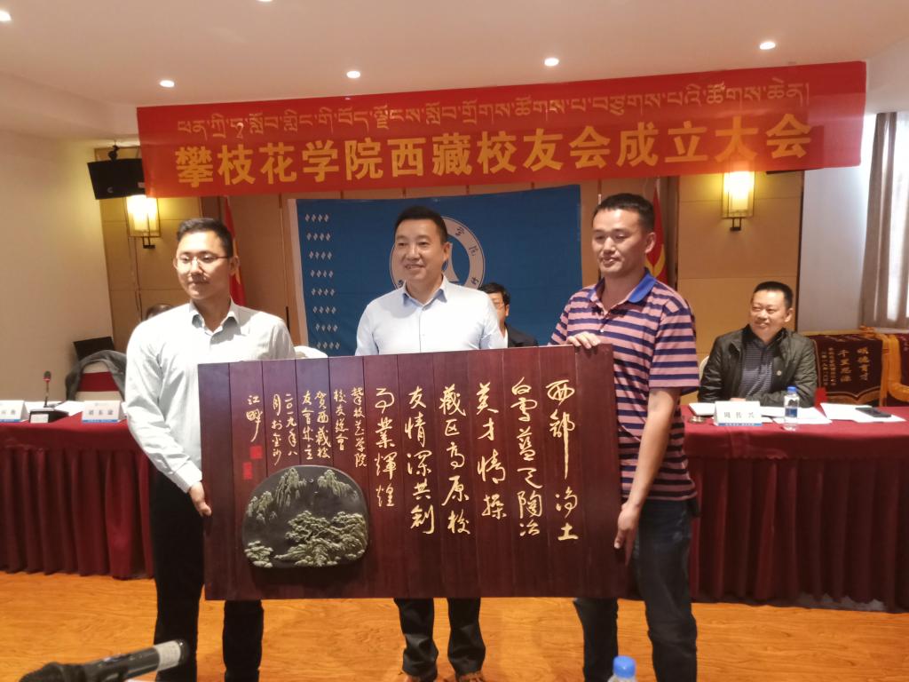党委副书记胥刚(中)向西藏校友会赠送牌匾