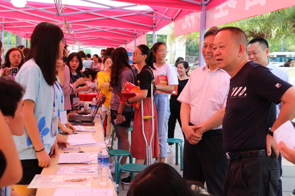 在各二级学院报到处,校领导一一驻足,向学院的领导、老师详细了解新生报到人数、生源地、男女比例、报到的交通问题,了解各单位迎新服务、学校有关政策宣传、各项保障措施落实等情况,查看各学院的迎新手册、宣传展板等宣传资料。每到一处,校领导与迎新老师、学生志愿者亲切交流,询问工作的开展情况,提醒他们把迎新工作做细做实,关注学生需求,加强与家长沟通联系,让家长放心,让学生安心。