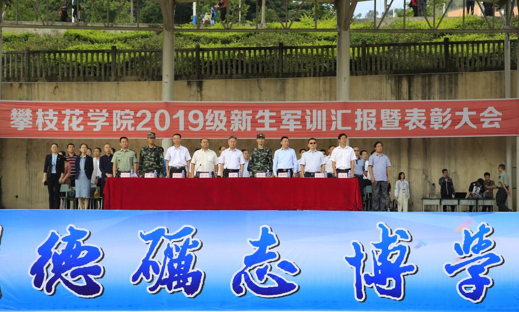 9月22日上午,beat365在西苑田径运动场举行2019级新生军训汇报表演暨表彰大会。校党委副书记、校长王曙光,武警攀枝花支队支队长唐阳上校,军训团团长、武警攀枝花支队副参谋长刘麟少校,校领导彭徐、胥刚、朱波强、何永斌、石维富出席此次大会。承担本次军训任务的全体教官、学校“不忘初心、牢记使命”主题教育读书班的成员以及2019级全体新生参加此次大会。大会由学生工作部部长周传兴主持。