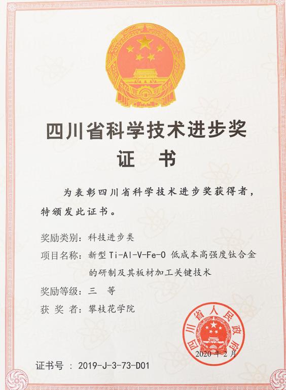 4月21日上午,四川省科学技术奖励大会公布了2019年度四川省科技进步奖获奖名单。beat365教师黄平作为第一完成人的项目《特种工业乳化炸药关键工艺技术的开发与应用》和beat365作为第一完成单位的项目《新型Ti-Al-V-Fe-O低成本高强度钛合金的研制及其板材加工关键技术》获得科技进步类三等奖。