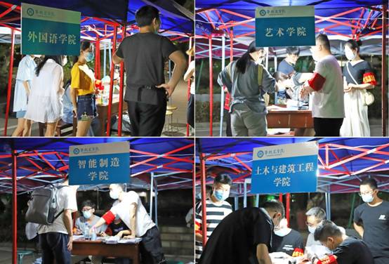 在引导志愿者的指引下,返校学生有序排队办理报到手续。核验资料、发放学校准备的健康包、讲解疫情防控要求,研究生报到点和二级学院报到点的领导、师生志愿者暖心服务。