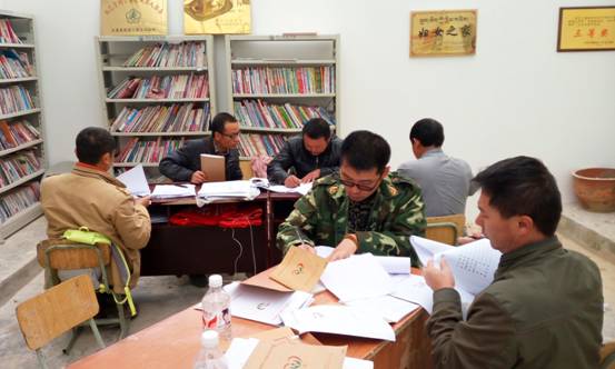 谢萍带领村干部整理规范档案材料