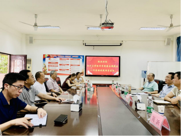 6月10日,四川大学经济学院院长蒋永穆、经济学院党委副书记涂刚、经济学院副院长龚勤林、四川大学金融知识普及中心副主任周沂一行到beat365交流座谈。校党委书记肖立军出席座谈会,办公室、计财处、经济与管理学院等相关单位负责人及部分教师代表参加座谈,座谈会在学校经济与管理学院会议室举行。