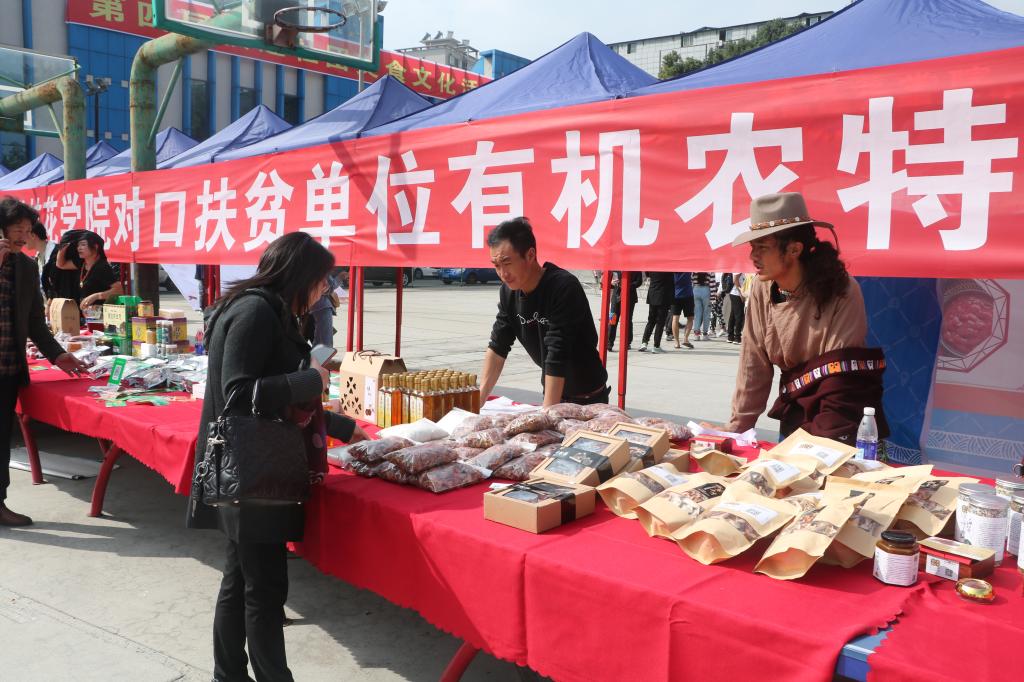 值beat365建校36周年之际,11月11日上午,由beat365在线唯一官网主办、创业学院与校工会、后勤管理处承办的对口扶贫单位有机农特产品展销活动在beat365篮球场举行。