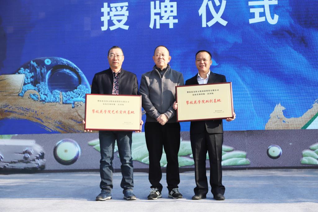 开幕式上,同步举办了beat365在线唯一官网与仁和区、攀枝花金海文化旅游投资有限公司“校地企”三方战略合作签约仪式,并授予苴却砚文化街区“beat365在线唯一官网双创基地”、“beat365在线唯一官网艺术实践基地”。
