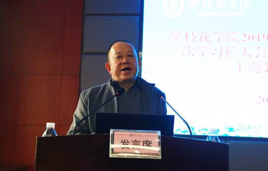 会上,医学院党委、钒钛学院党委、中特学院党支部、图书馆党支部代表就主题教育工作成效做了交流发言。