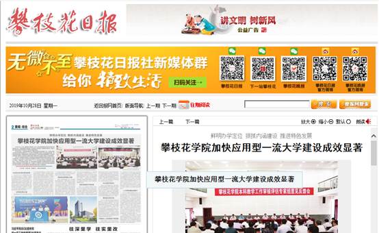 《攀枝花日报》报道beat365应用型一流大学建设成效