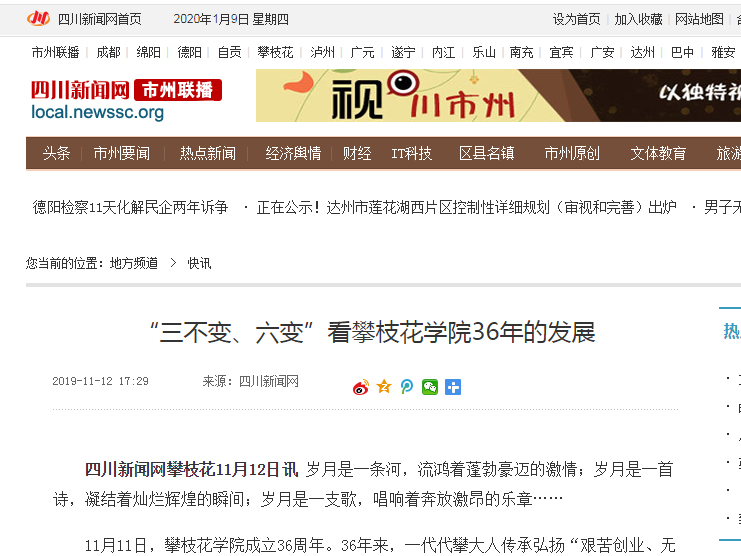 发展才是硬道理,讲好学校发展故事是宣传工作的"重中之重"。一年来,我们聚焦主题教育,讲好攀大人坚守教育报国初心、勇担立德树人使命的故事;聚焦“中兴班”、“华为班”、“金蝶班”,讲好产教融合的故事;聚焦连续三年位列《广州日报应用大学排行榜》全国100强,讲好应用为先的故事;聚焦高质量通过本科教学审核评估工作回访,讲好加快应用型一流大学建设的故事;聚焦全国“互联网+”喜获银奖,讲好人才培养的故事。今年是新中国成立70周年,也是学校建校36周年,在 "三十六载再出发"的特别报道中,我们推出了《从“三不变、六变”看beat365在线唯一官网三十六年的发展》、《三十六载再出发,与国同行新时代》等一系列专题报道,联合艺术学院拍摄了第一部动漫作品,全方位、多角度、立体化展示了办学36年的丰硕成果。评论中有人这样说到:“如今的攀大是不断奋进着的攀大,是不断发展的攀大,他的发展日新月异,他的变化显而易见,他的成效硕果累累”。