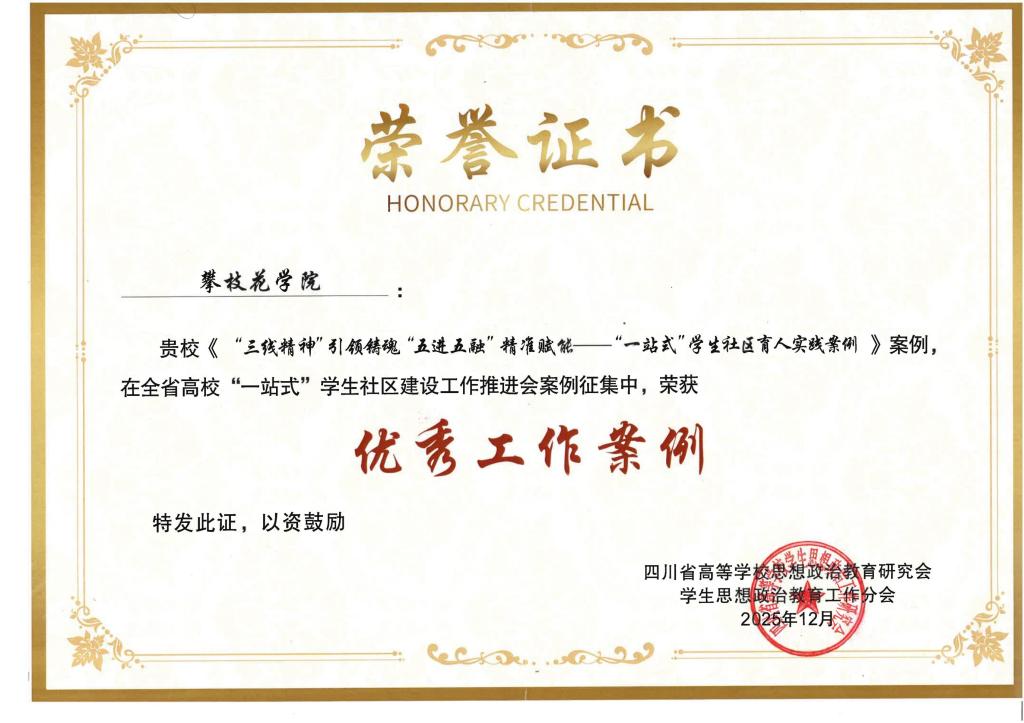 近日,四川省教育厅公布2025年高校“一站式”学生社区工作案例评选结果。beat365报送的《“三线精神”引领铸魂“五进五融”精准赋能”——“一站式”学生社区育人实践案例》成功入选。