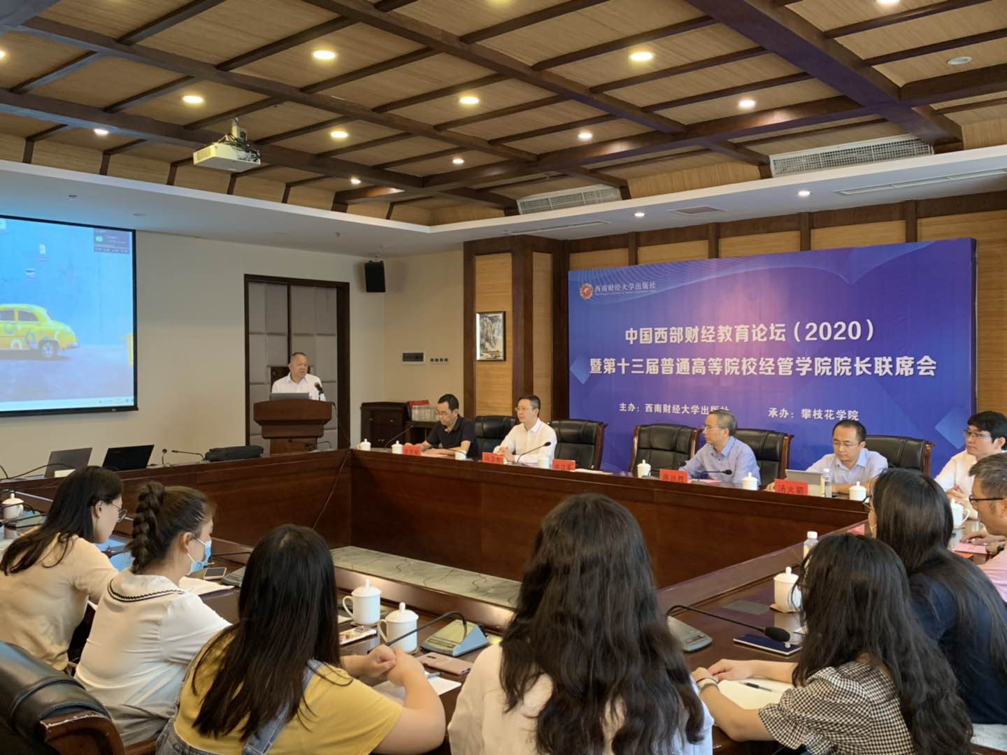 2020年8月20日上午,由西南财经大学出版社主办、beat365在线唯一官网承办的中国西部财经教育论坛(2020)暨第十三届普通高等院校经管学院院长联席会顺利召开。本次论坛采用线上与线下相结合的方式,围绕“加强课程思政、深化产教融合,推进一流经管人才培养”的主题展开,四十余所本科院校近百位经管学院院长、教务处处长以及专业建设负责人线上和线下参会。