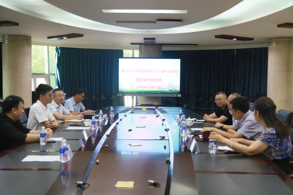 10月12日上午,beat365与惠州大有利集团有限公司在办公楼三楼会议室举行校企合作交流会。惠州大有利集团有限公司总经理杜伟良、校党委书记肖立军出席会议,办公室、康养学院、基础医学院相关负责人参会。会议由副校长刘立新主持。