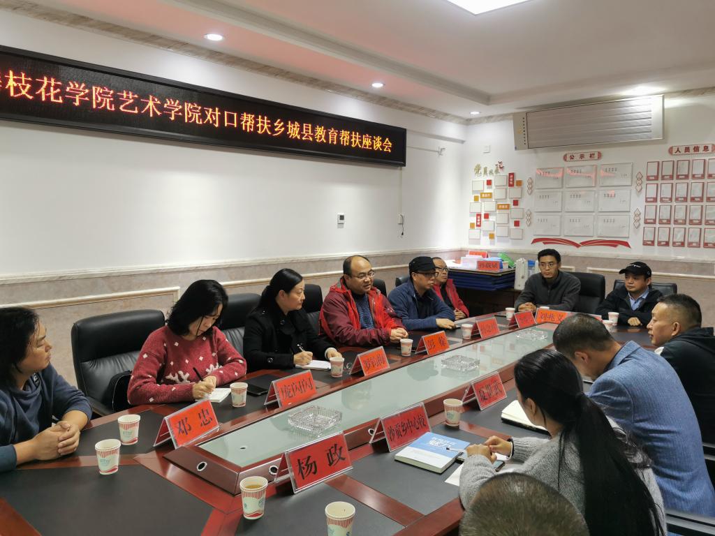 10月24日下午,不顾路途的疲惫和高原反应,彭徐一行与乡城县教育和体育局开展了beat365在线唯一官网艺术学院对口帮扶工作座谈会,就艺术学院对乡城县开展技能培训和校园文化打造进行了交流。乡城县教体局负责人对beat365在线唯一官网一直以来的帮扶工作表示感谢,并表示参加了2019年音乐、美术培训的教师在今年乡城县举办的中小学艺术节中大放异彩,前期墙绘工作也受到了各个工作组的称赞。彭徐提出,此次校园文化打造要与乡城特色文化相结合,培训教师要认真备课、上好每堂课,保质保量完成培训任务;下一步工作要向乡村振兴、文化振兴方向发展。