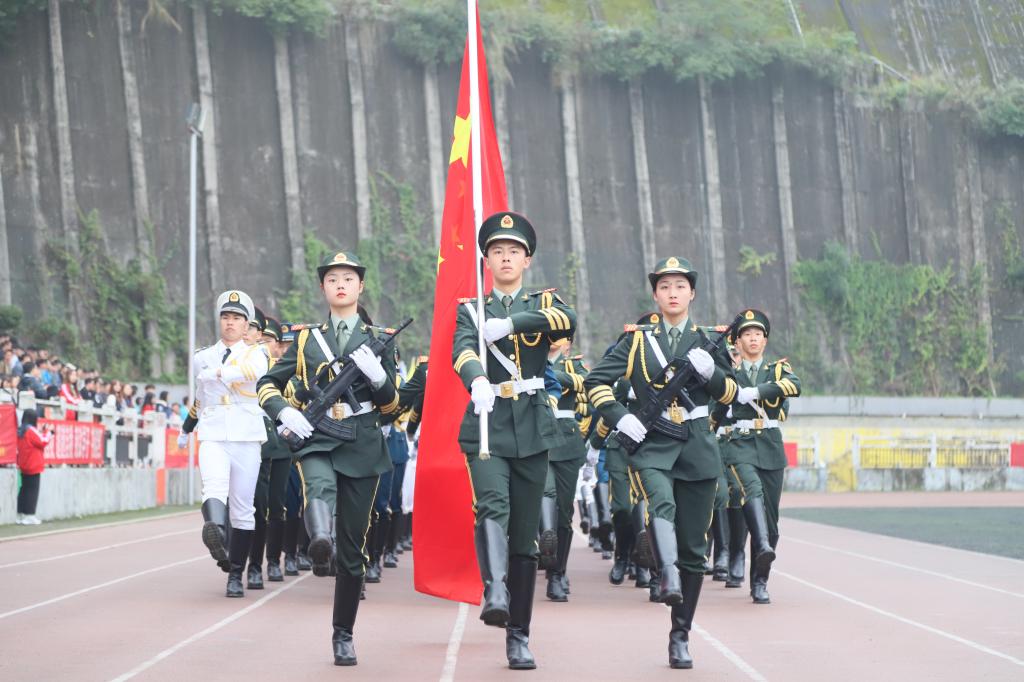 大会在庄严的国歌声中拉开帷幕。伴随着《分列式进行曲》,分列式受阅方队依次走过主席台接受检阅。与会师生共同观看了新生分列式、女子手形操方队、体能方队、体操方队等汇报表演。