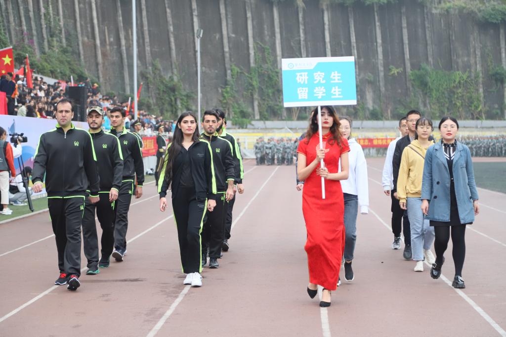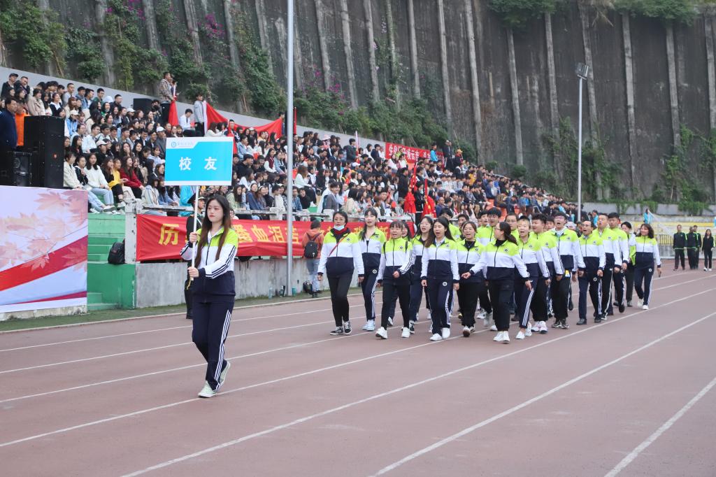 11月11日上午,在学校田径运动场上,各方队朝气勃勃踏着整齐的步伐,伴随着激昂的音乐有序进场,2020级新生军训汇报大会暨第五届校运社团美食文化活动节正式开幕。