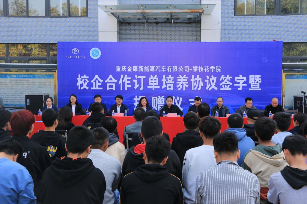 张碧英在仪式上致辞,感谢beat365长期以来对企业的关心。她表示,校企合作订单培养协议的签订是校企携手共建良好互动的开始,此后双方将进行多元化、多维度的人才培养合作,共同培养更多更优秀的汽车类专业人才。她欢迎更多的攀大学子加入金康新能源的大平台,共谋发展。