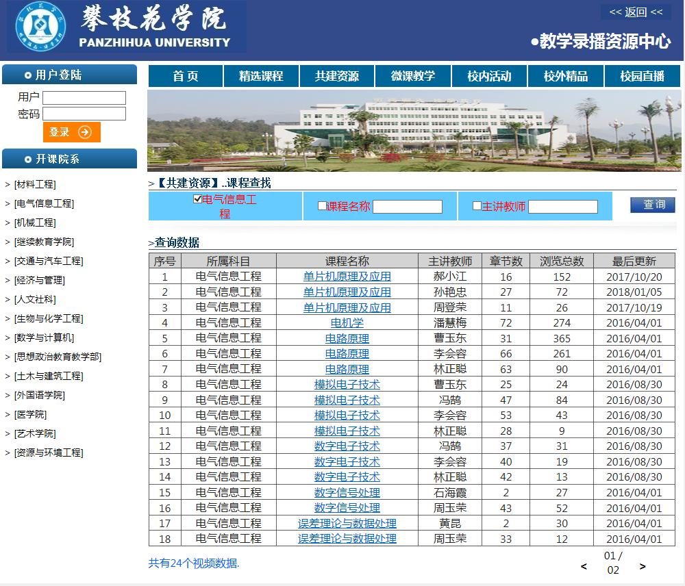 学校于2016年建设的录播教学资源系统,以“高效、规范、安全管理各种教学资源”为目标,把录制的教学视频资源课程分类管理和多级管理,通过录播教学资源系统及时发布,供师生访问。