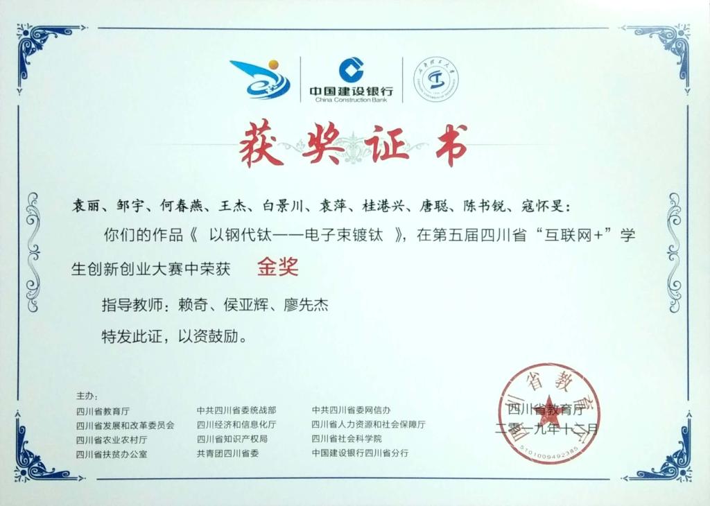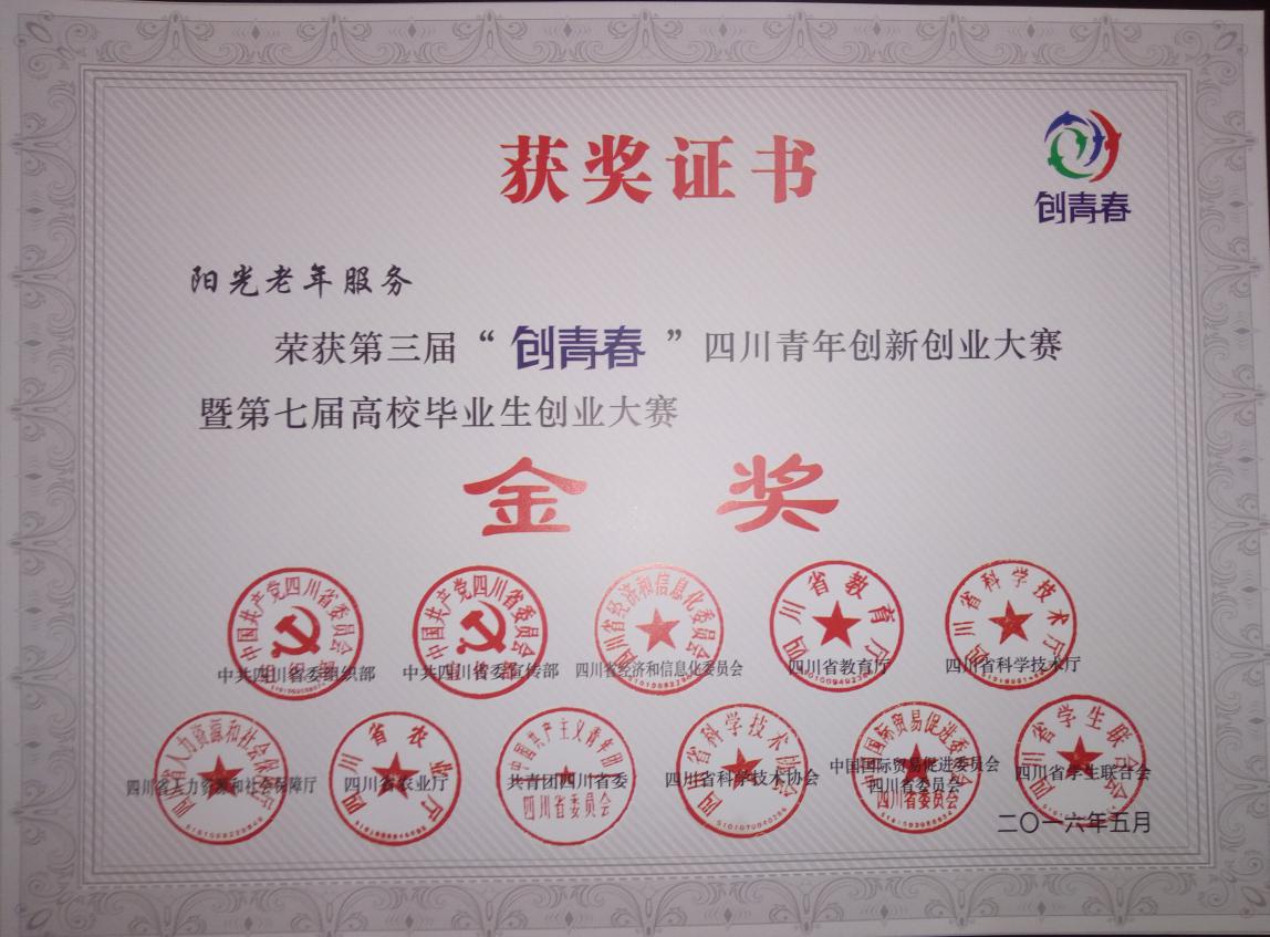 beat365第三届“创青春”四川青年创新创业大赛获奖证书