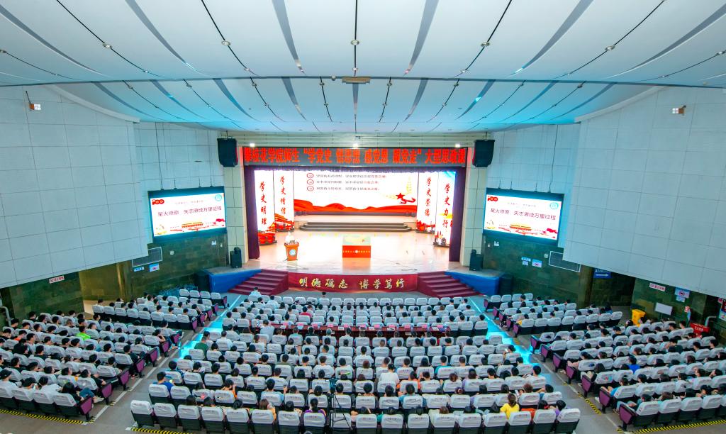 随着2位老师声情并茂的讲述、10名学生饱含深情的分享,从中国共产党人初心启航的南湖红船,到揭开中国共产党独立武装和创建革命军队序幕的南昌起义纪念馆;从创建中国革命第一个红色政权的井冈山革命根据地,到共产党具有历史转折意义的遵义会议会址……红军和群众在井冈山“有盐同咸、无盐同淡”;120多位代表顶着寒风、冒着大雪、烤着炭火参加古田会议;红军战士昼夜奔袭抢占泸定桥;中国航天征高轨、探深空、举北斗、顶风云;展现强大国家实力举办第41届世界博览会;以中国速度、中国力量、中国担当打赢抗击新冠肺炎疫情的人民战争……一幅幅壮美的画面徐徐呈现,在娓娓讲述中,800名师生与历史人物重逢,感悟建党初心。